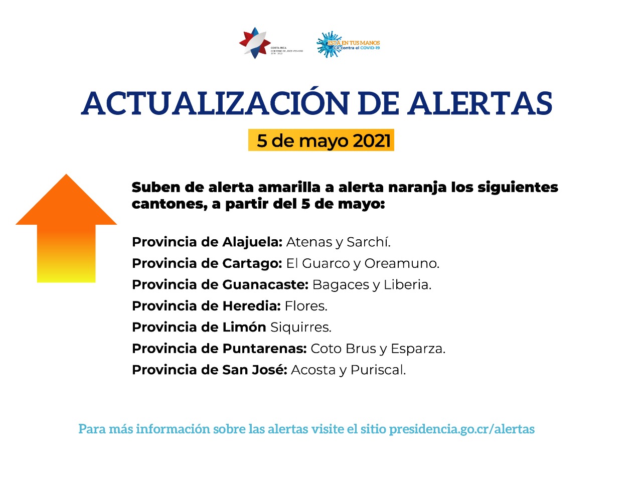 Los 12 cantones que a partir de hoy suben a alerta naranja son: